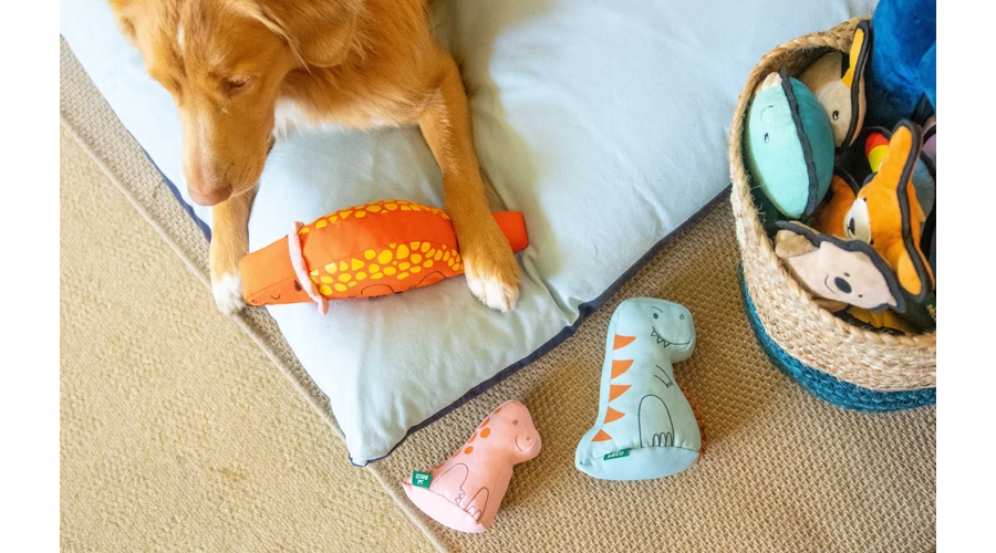 Üdvözlünk a BECO DINO-k világában! Ezek az igazán különleges és ölelgetnivaló kisállatok alig várják, hogy egy kis szeretet adjanak és kapjanak! Ennek az élénk és színes csapatnak minden tagja dupla varrással és belső síppal rendelkezik, így nem hiányozhatnak a játékkosarából. Ezek az őskori pajtások alig várják, hogy kutyád új legjobb barátaivá váljanak, és mindegyik újrahasznosított anyagokból készült, így a hulladéknak második (és játékosabb) életet adnak.